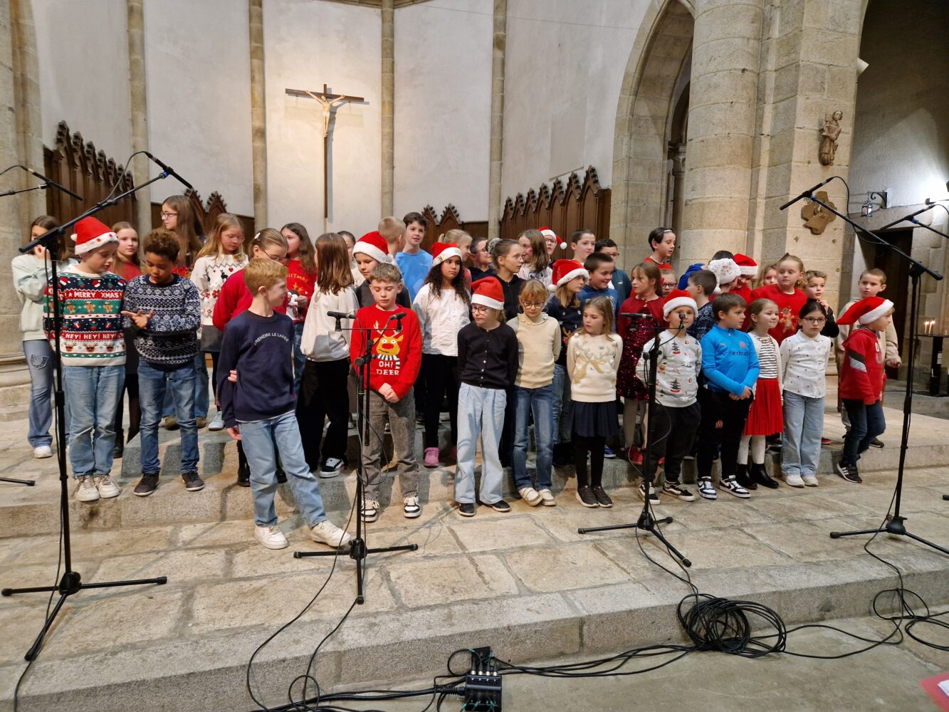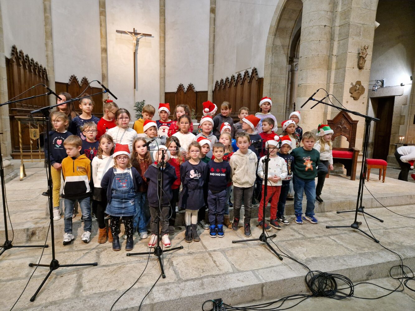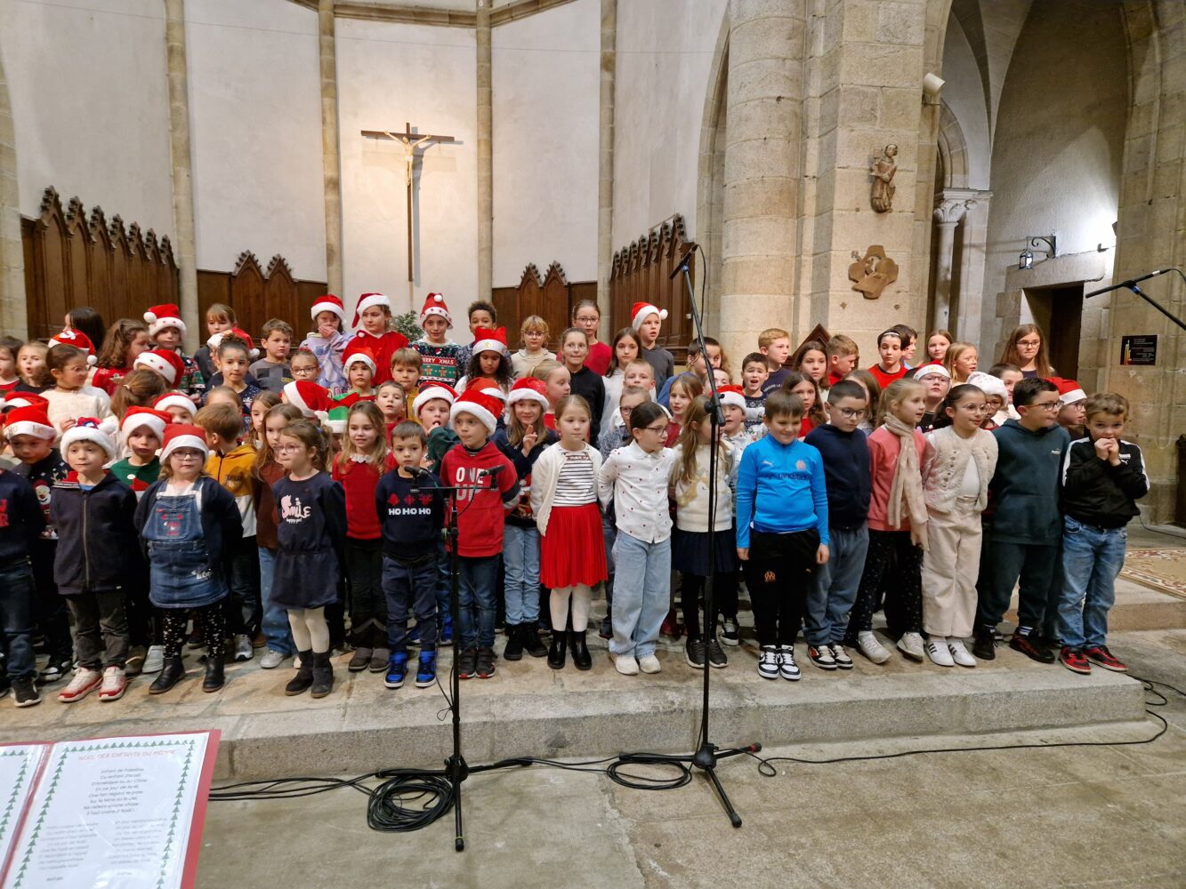 Mardi 16 décembre a eu lieu notre traditionnelle veillée de Noël : les enfants ont chanté à l’église puis nous sommes revenus à l’école pour l’exposition de bricolages et le vin chaud.